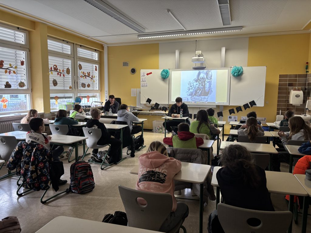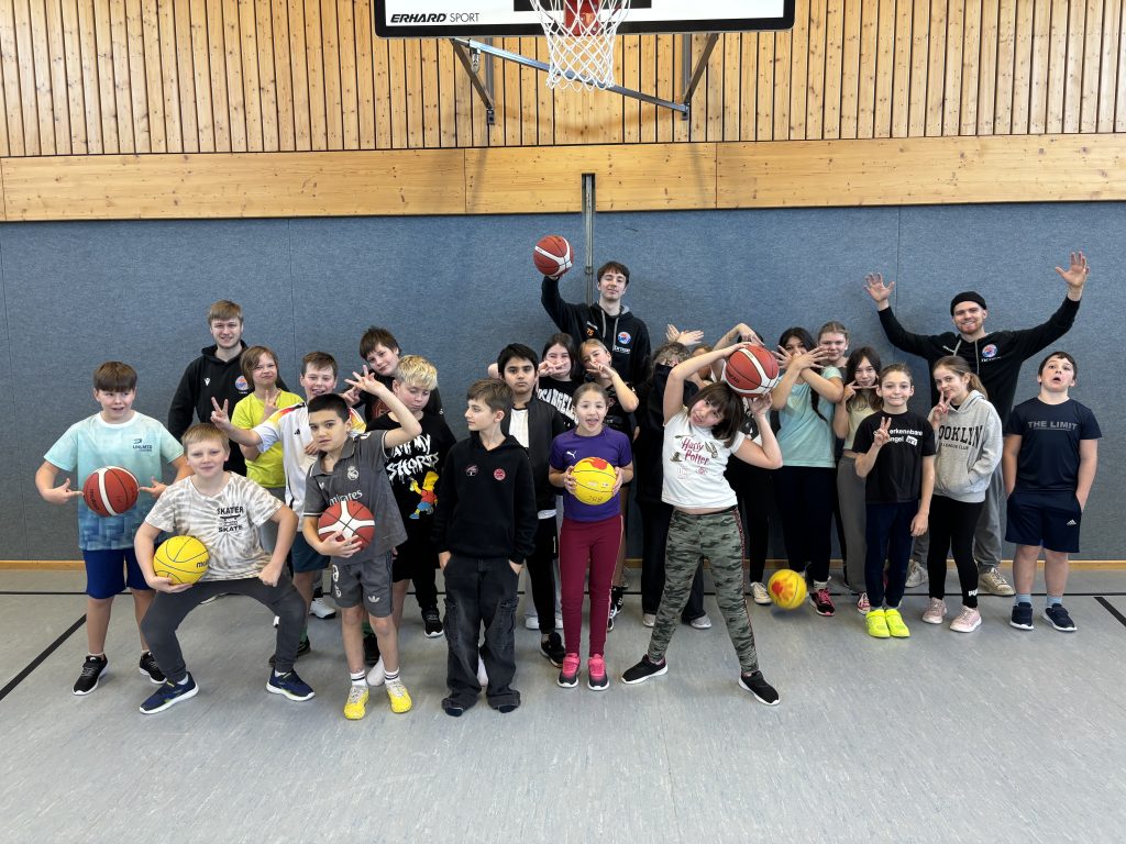 Am Morgen des 21.11.2025 war die Aufregung in den beiden fünften Klassen rund um die Klassenlehrer Lisa Neubauer und Sebastian Böhnlein groß: Der BBC Coburg, aktueller Tabellenführer in der zweiten Basketball-Bundesliga Pro B, hatte sich mit den Profispielern Finn Motter und Erik Neunhoeffer und zwei Jugendtrainern zu einem Besuch an unserer Schule angekündigt.
